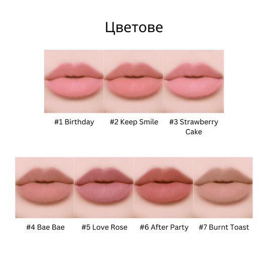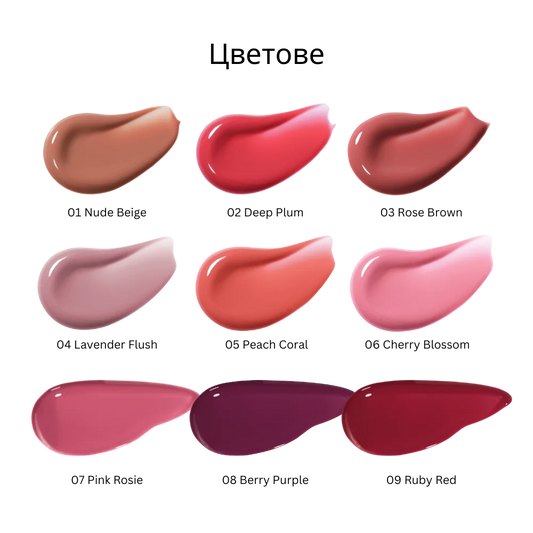 Тинтове за устни – Наситен цвят с дълготрайна формула, която подчертава устните, без да ги изсушава. Lip tint-овете се отличават с лекота при нанасяне и устойчивост, като остават свежи дори след часове носене.